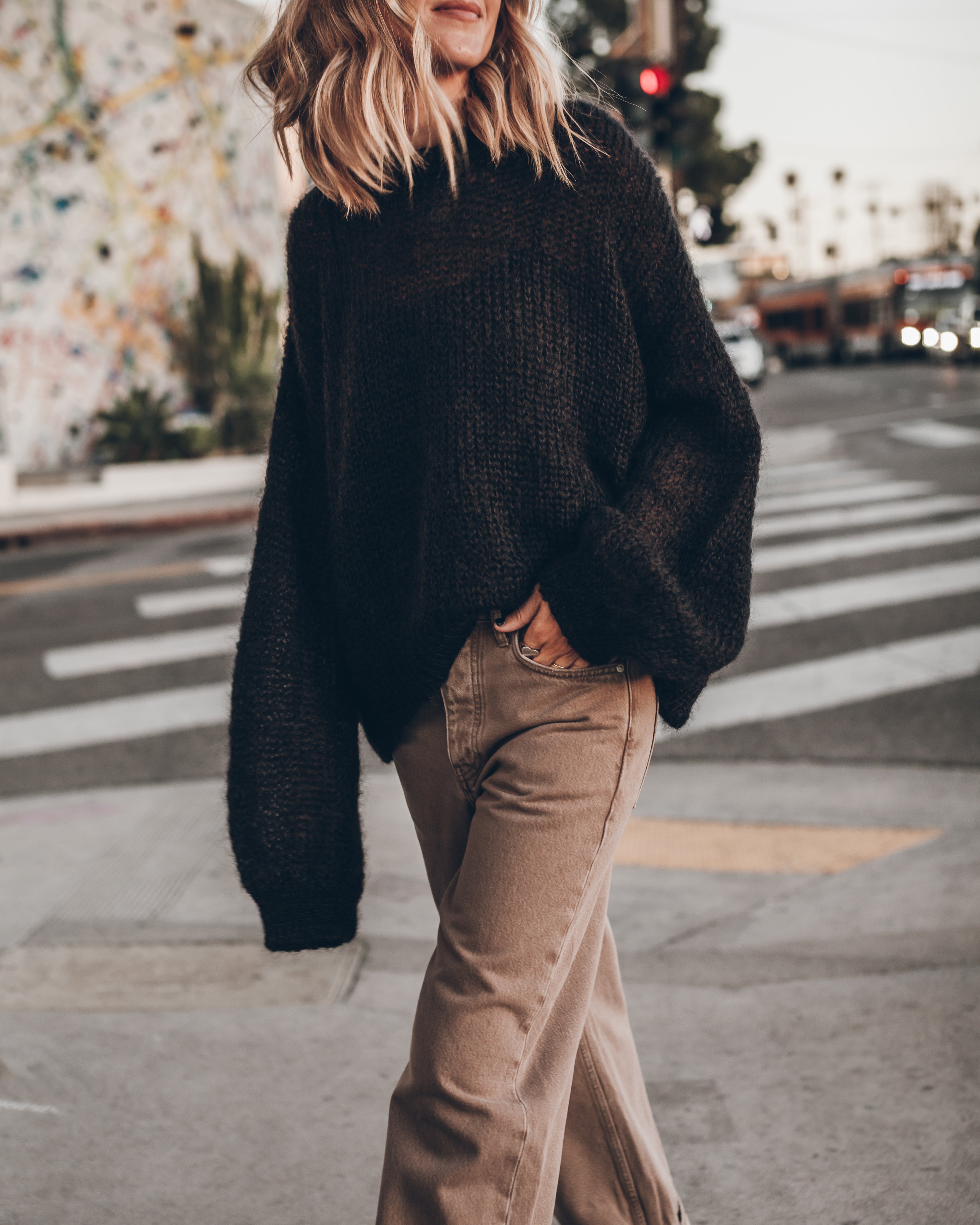• Black fine kid mohair knit sweater