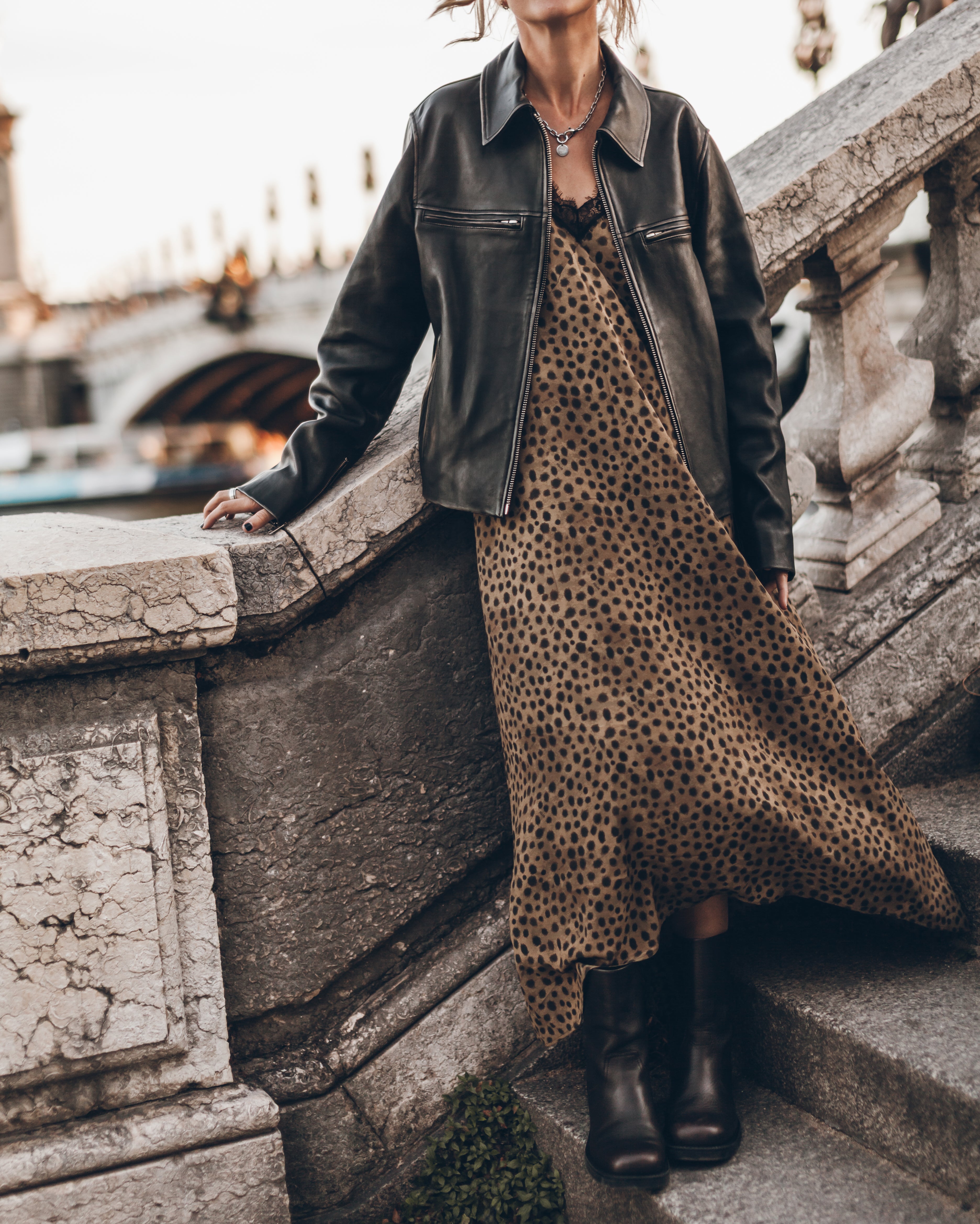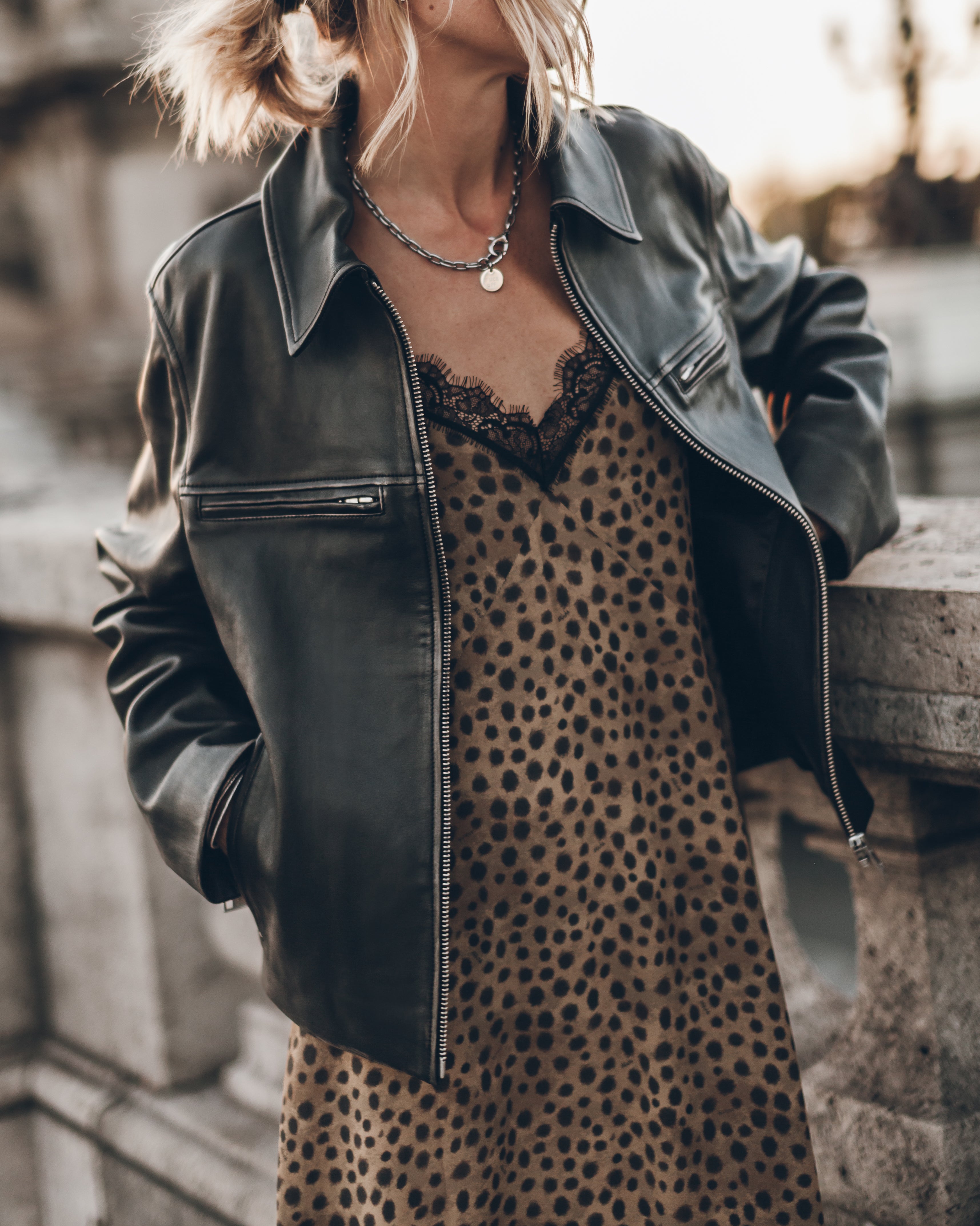 Tailored to every frame with a slightly oversized, lasting and intentional cut, this 100% natural leather jacket is butter-soft with a distressed vintage finish that continues to evolve beautifully and uniquely with age. Features two front chest pockets, two side pockets, and extra long sleeve length with zipper detail.