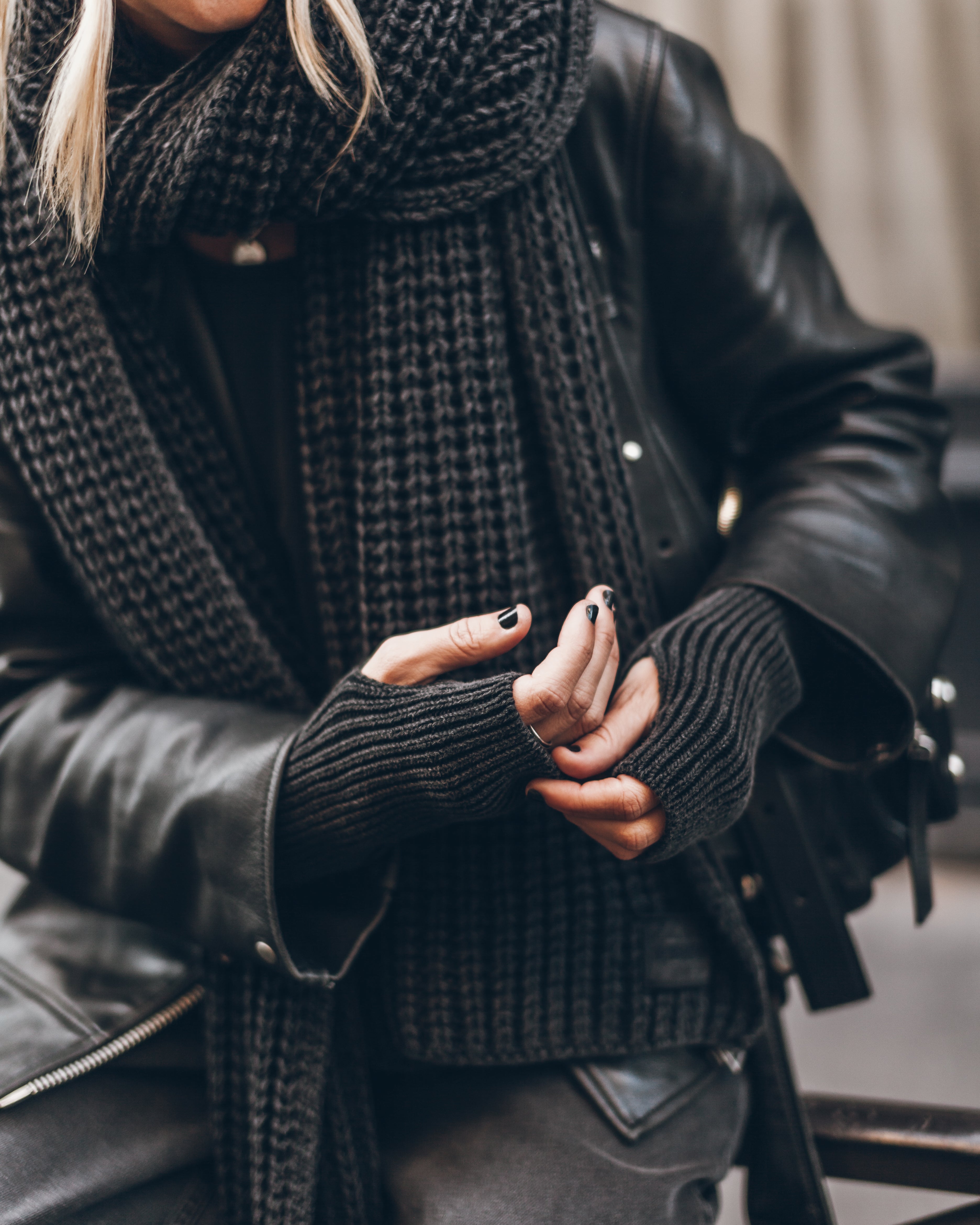 Soft and cozy non-itchy fingerless gloves in faded charcoal grey.