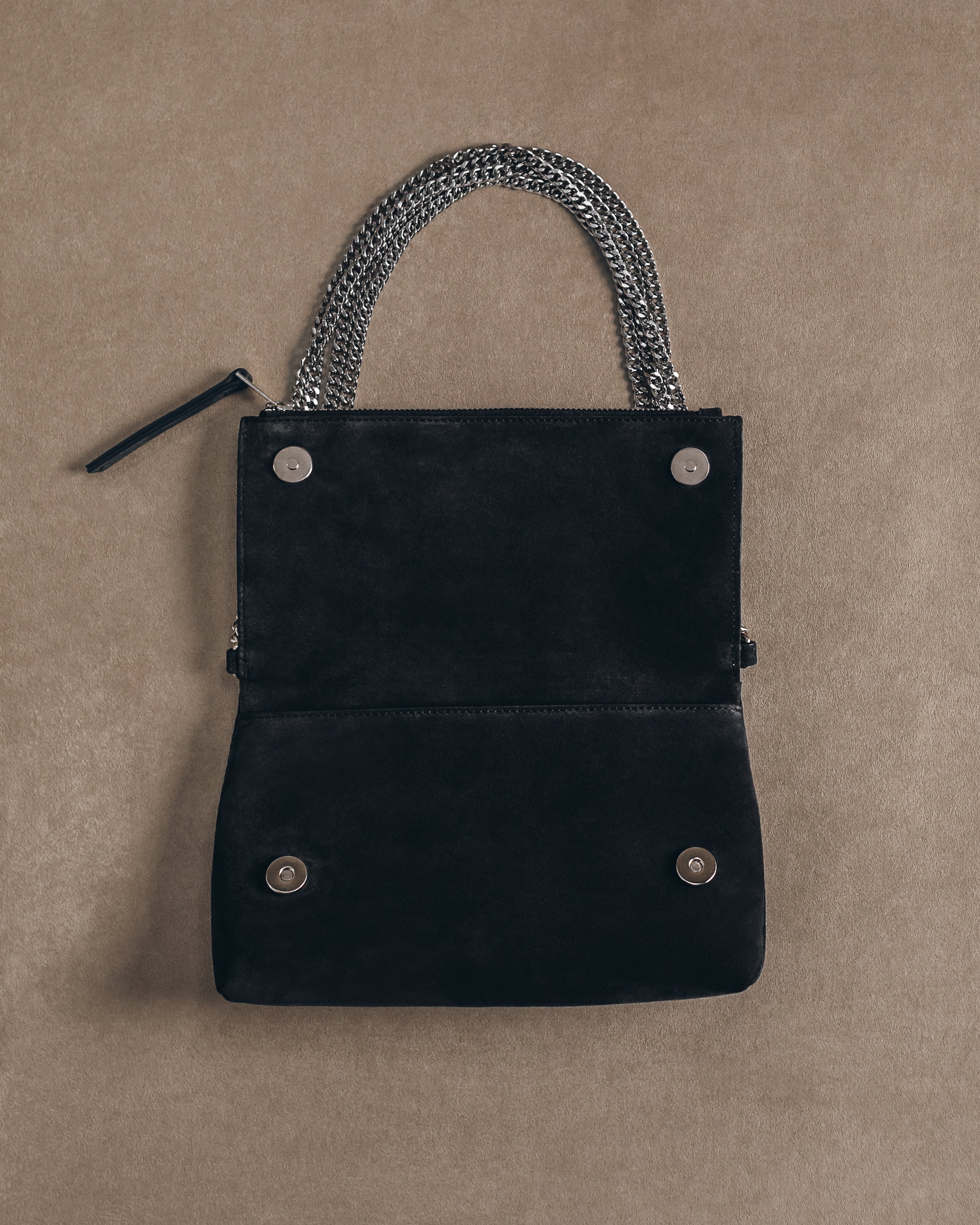 Made in Portugal, this elevated envelope bag is crafted with a 100% chrome-free leather exterior and soft cotton lining. Designed with European simplicity, the bag features a top zipper opening, inside pocket compartment, magnetic foldover closure, silver foil logo, and adjustable chain that can be worn over the shoulder or as a crossbody.