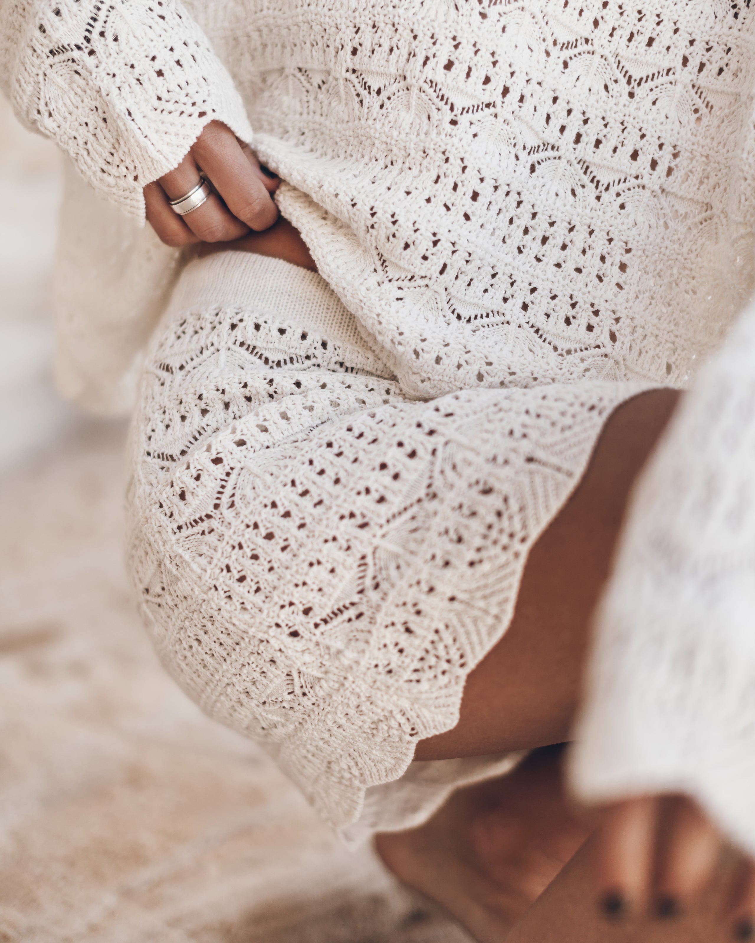 Enter bohemian bliss with this nostalgic and timeless crochet skirt. Crafted in a thick, breathable linen blend, the ecru mini-skirt is made extra-durable to travel everywhere with you, perfect for layering over your favorite swimsuit or dressing up with strappy sandals for an evening out. The hook crochet detailing adds a touch of artisanal charm while still allowing for extra skin contact with the elements.