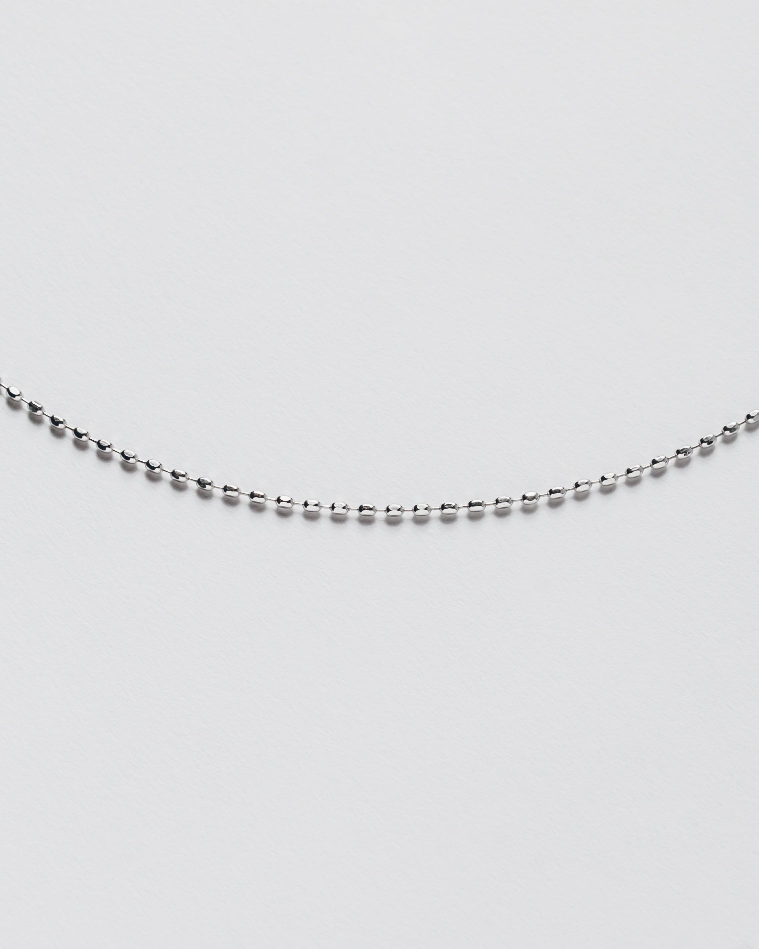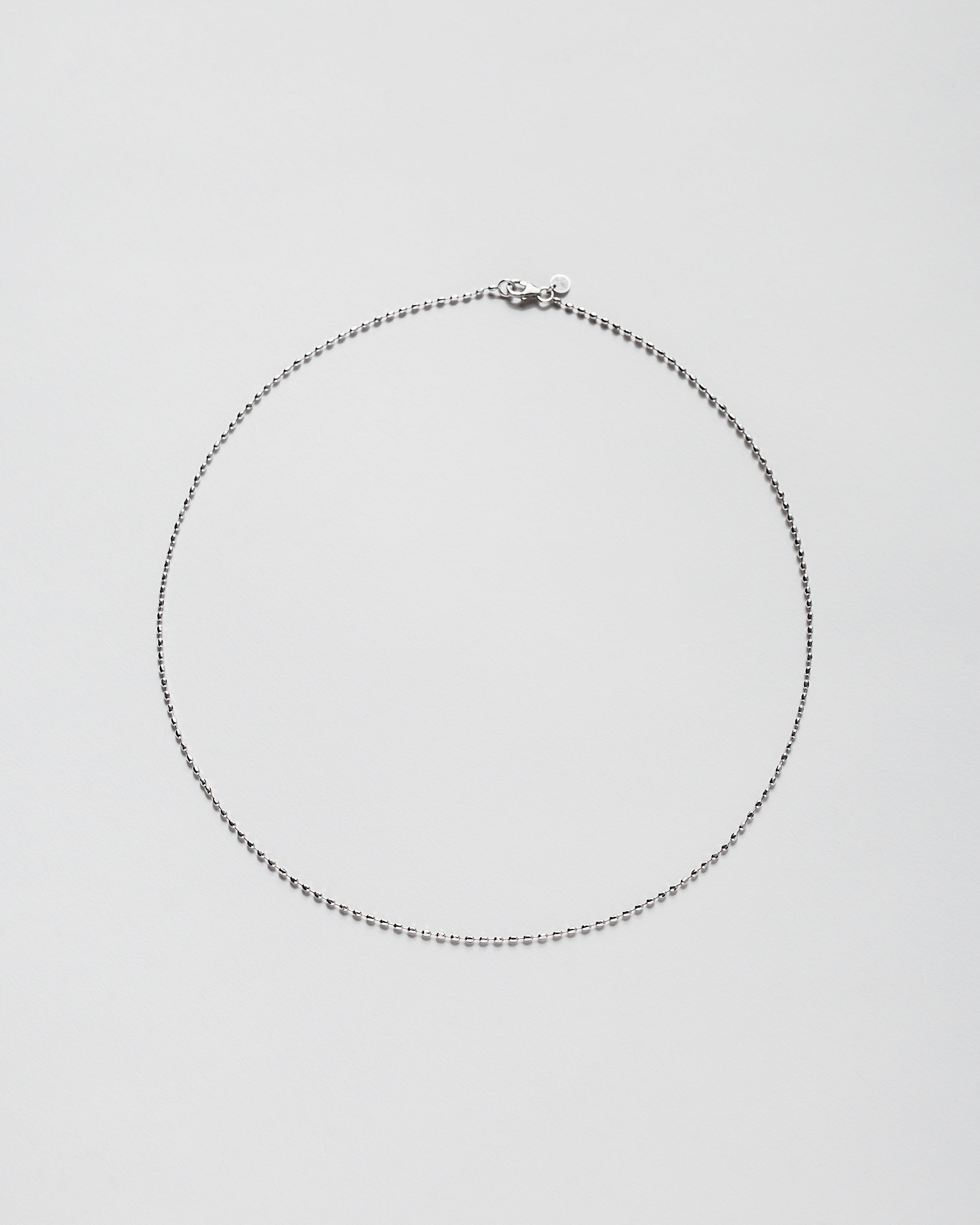 An ode to simplicity. The Fine Necklace celebrates MIKUTA’s core value of quiet confidence. Handcrafted in Spain from 925 sterling silver, each delicate link is shaped and polished with care, creating a subtle shimmer that catches the light with every movement, accented with a tiny MIKUTA logo charm.